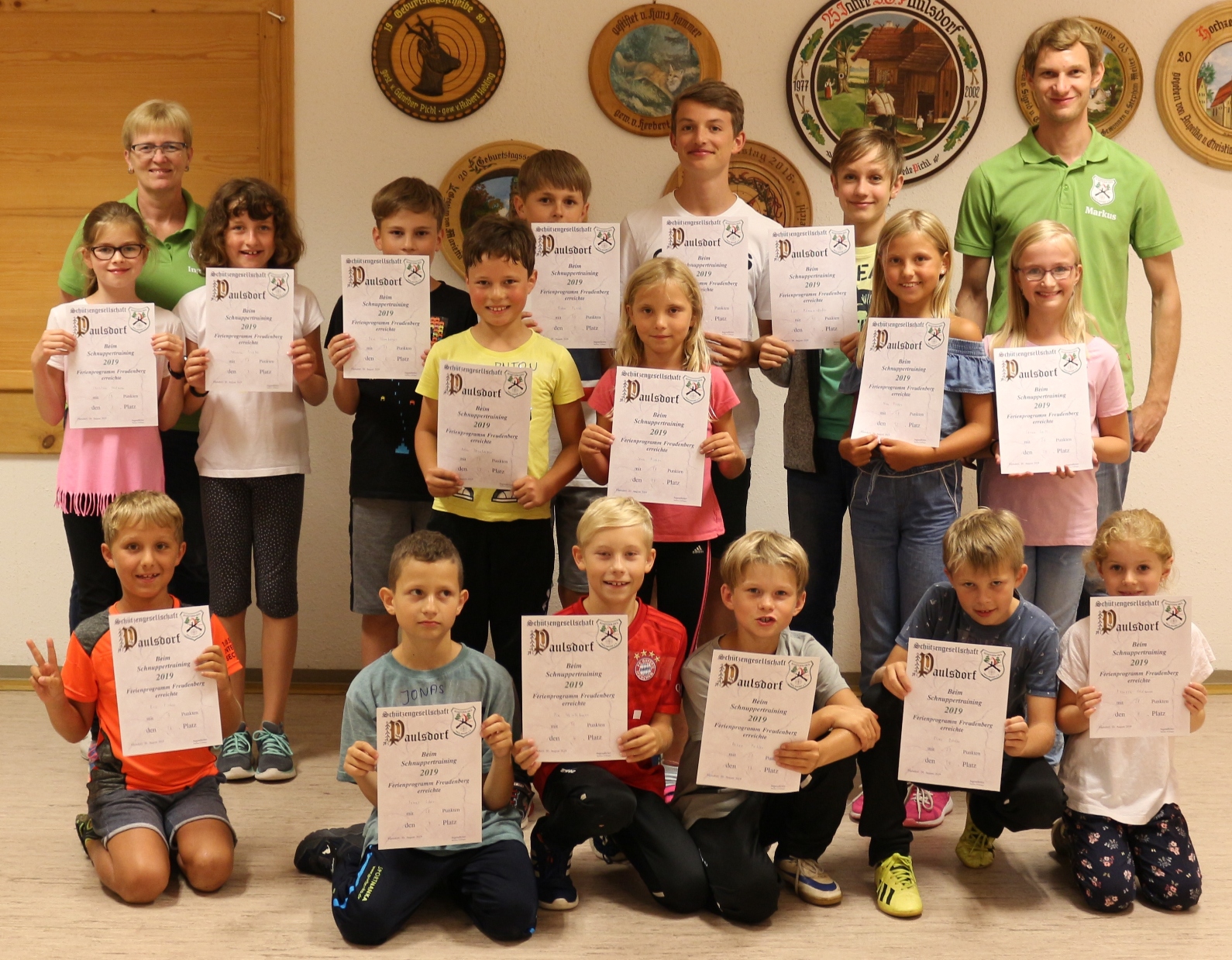 Am Schnupperschießen bei der Schützengesellschaft Paulsdorf im Rahmen des Ferienprogramms konnten diesmal 16 Mädchen und Buben ihre Treffsicherheit testen. Nach kurzer Einführung in die Grundlagen des Schießens mit Luftgewehr und -pistole durch die Jugendleiter gab es eine Führung durchs Schützenheim. Dann durften die Jugendlichen an die Stände treten. Beim aufgelegten Schießen mit dem Luftgewehr oder dem Lichtgewehr erzielten sie zum Teil sehr gute Teiler. Bei Spielen wie Ringe werfen, 3D Puzzle, Riesenmikado und dem „Nervösen Draht“ mussten die Mädchen und Buben ein ruhiges Händchen haben, um Punkte einzufahren. Zur Stärkung wurden Kuchen und Wiener angeboten. Bei der Siegerehrung gab es nur Gewinner, denn jeder bekam eine Urkunde und konnte sich einen Preis aussuchen.
