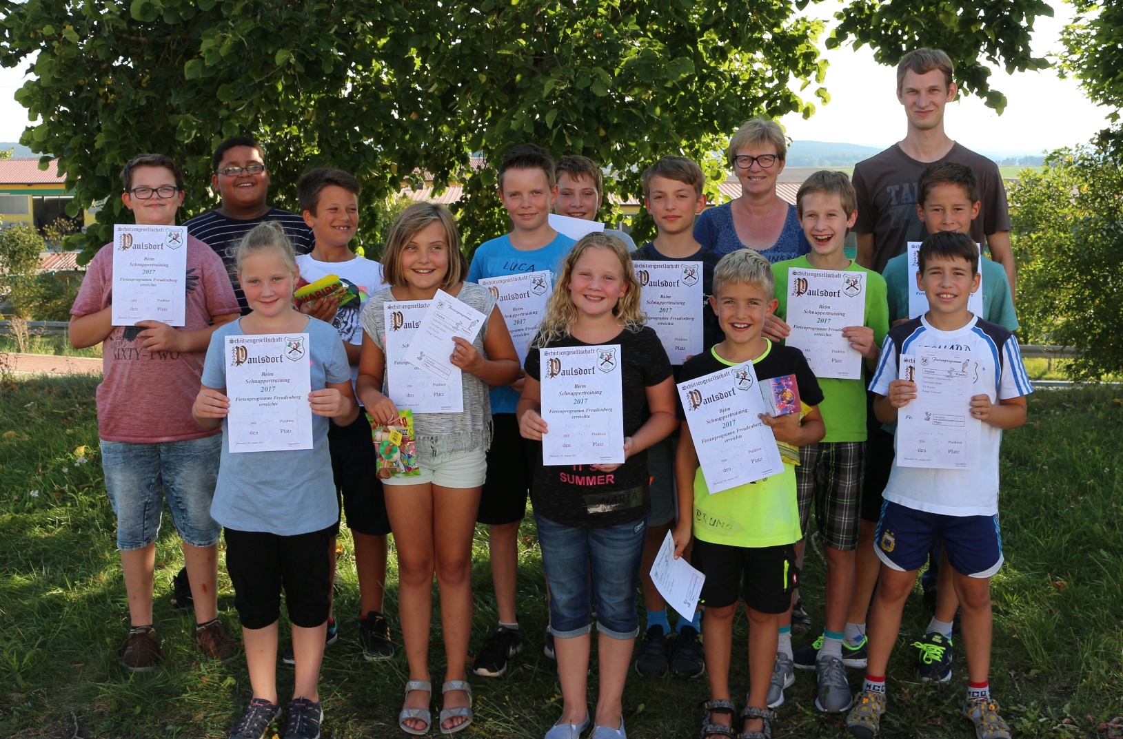 Am Schnupperschießen bei der Schützengesellschaft Paulsdorf im Rahmen des Ferienprogramms konnten diesmal 16 Mädchen und Buben ihre Treffsicherheit testen. Nach kurzer Einführung in die Grundlagen des Schießens mit Luftgewehr und -pistole durch die Jugendleiter gab es eine Führung durchs Schützenheim. Dann durften die Jugendlichen an die Stände treten. Beim aufgelegten Schießen mit dem Luftgewehr oder dem Lichtgewehr erzielten sie zum Teil sehr gute Teiler. Bei Spielen wie Ringe werfen, 3D Puzzle, Riesenmikado und dem „Nervösen Draht“ mussten die Mädchen und Buben ein ruhiges Händchen haben, um Punkte einzufahren. Zur Stärkung wurden Kuchen und Wiener angeboten. Bei der Siegerehrung gab es nur Gewinner, denn jeder bekam eine Urkunde und konnte sich einen Preis aussuchen.