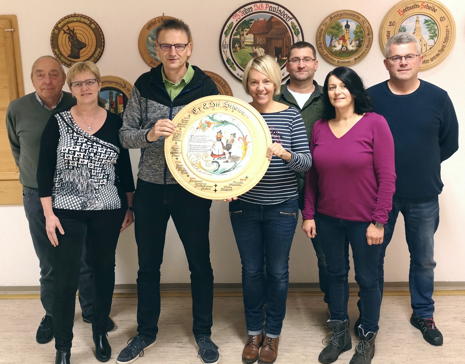Bild von links: Stefanie Richter, Robert Meiler, Sigrid Schörner, Vitus Reichl, Susanne Reinwald, Gerhard Singer, Schützenmeister Christian Schörner.