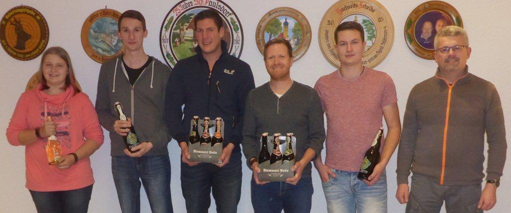 Bei der Schützengesellschaft Paulsdorf schossen 12 Aktive den Paulsdorf-Wanderpokal in den Kategorien freistehend und aufgelegt aus. Zehn Monate waren mindestens je zehn Schuss abzugeben. Die drei besten Teiler zählten. Freistehend siegte Sigrid Schörner mit einem 105,7-Gesamtteiler (bester Einzelteiler 5,3) vor Susanne Reinwald (117,4) und Christian Schörner (150,5). Aufgelegt setzte sich Anna Meiler mit einem 167,8-Teiler an die Spitze, gefolgt von Vitus Reichl (168, bester Einzelteiler 36) und Robert Aschenbrenner (174,8). Die beiden Ersten erhielten die Wanderpokale.