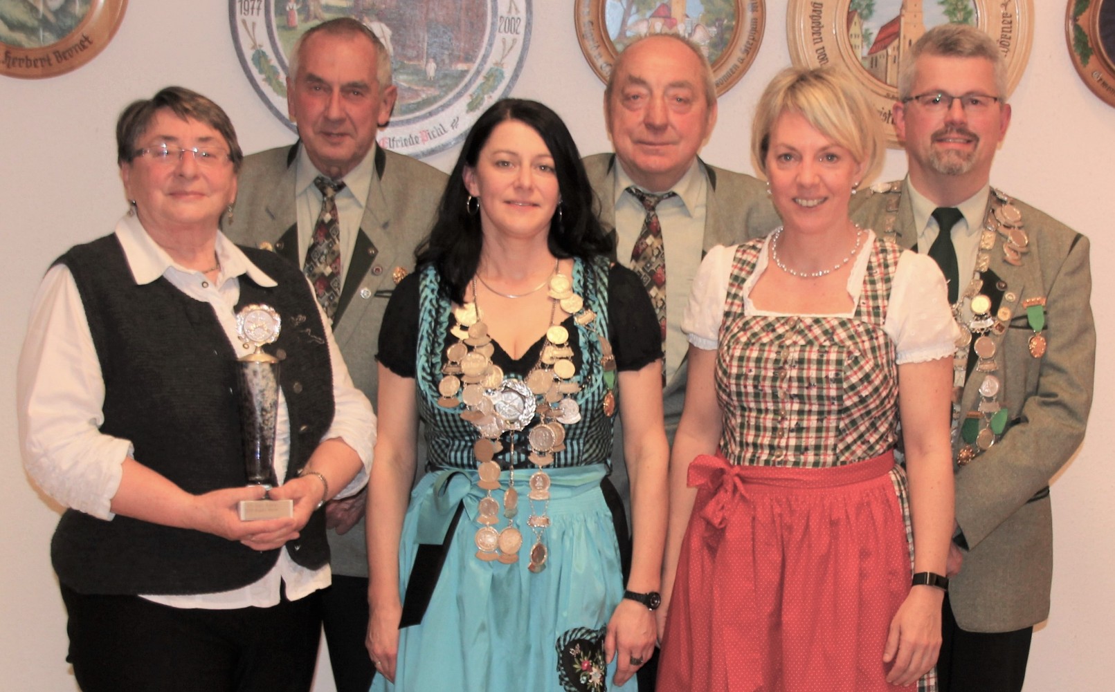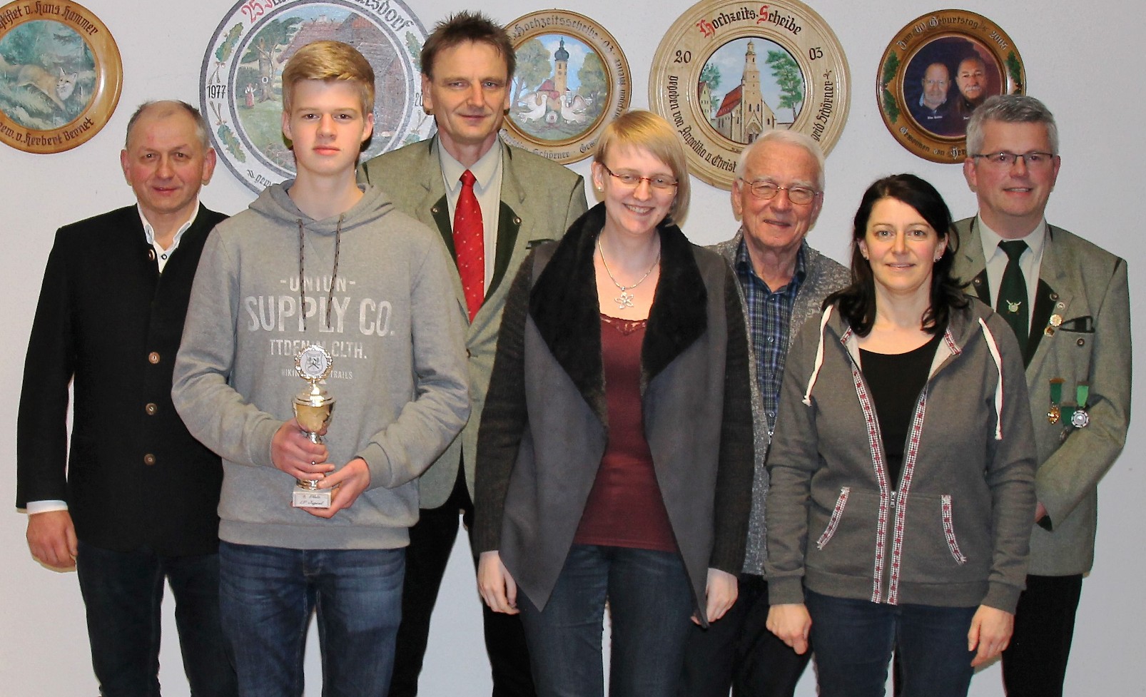 Sportleiter Gerhard Singer zeichnete die Besten auf Glück-, Meister- und Festscheibe aus. Bei Glück-Meister freistehend siegte Sigrid Schörner (26-Teiler) vor Tanja Singer (91 Ringe) und Susanne Reinwald (52-Teiler). Bei Glück-Meister aufgelegt kam Vitus Reichl (43-Teiler) auf Platz eins, Rang zwei belegte Robert Meiler (95 Ringe), Platz drei Stefanie Richter (78-Teiler). Bei der Festscheibe freistehend setzte sich Susanne Reinwald mit einem 100,9-Teiler an die Spitze, gefolgt von Julian Meiler (160,2) und Sigrid Schörner (175,8). Aufgelegt auf die Festscheibe lag Robert Aschenbrenner mit einem 56,4-Teiler vorn. Robert Meiler (58,2) wurde Zweiter, Maria Aschenbrenner Dritte.