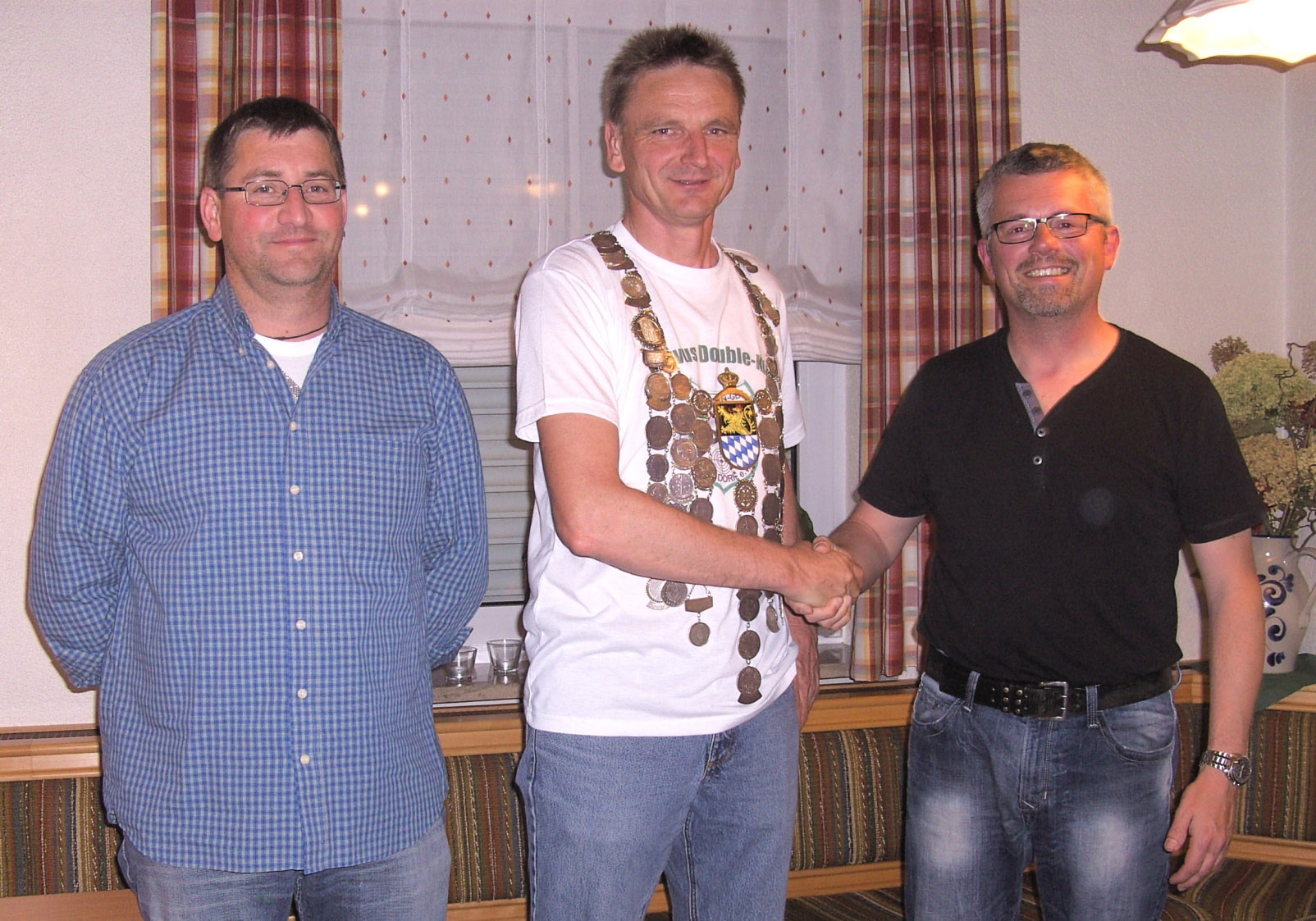 Foto von links: 2. Ritter Stephan Meiler, Gauschützenkönig Gerhard Singer, Schützenmeister Christian Schörner
