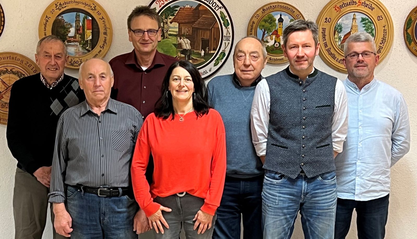 Bild von links: Vitus Reichl, Robert Meiler, Gerhard Singer, Sigrid Schörner, Robert Aschenbrenner, Daniel Liegl, Schützenmeister Christian Schörner.