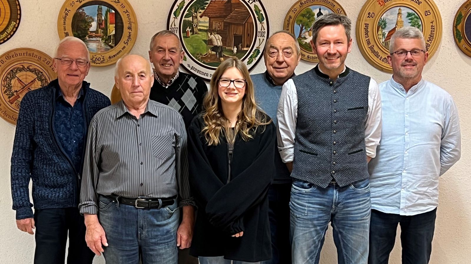 Bild von links Siegbert Rühlicke, Robert Meiler, Vitus Reichl, Viktoria Liegl, Robert Aschenbrenner, Daniel Liegl, Schützenmeister Christian Schörner.
