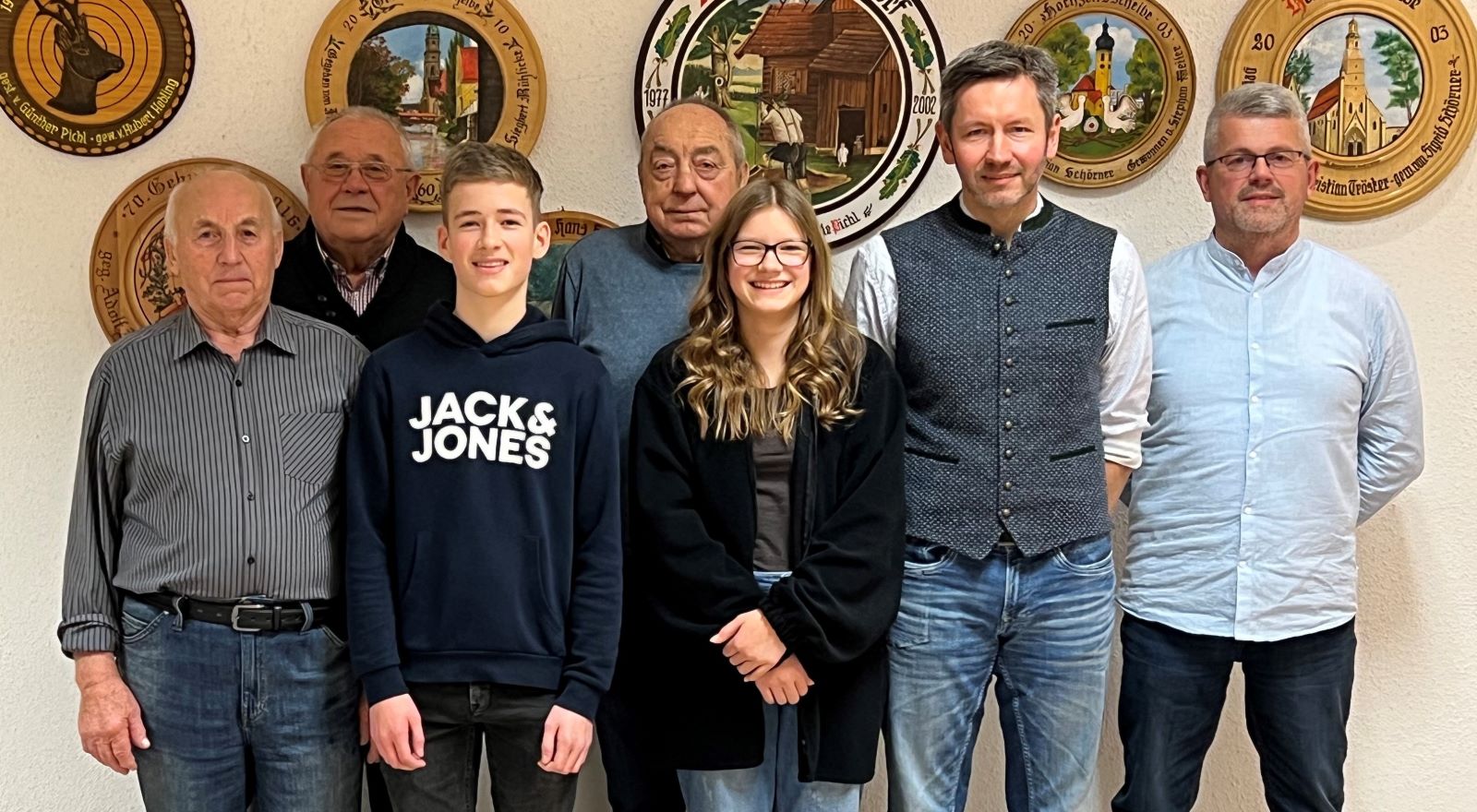 Bild hintere Reihe von links: Susanne Reinwald, Tanja Singer, Günther Pichl, Michael Meiler, Viktoria Liegl, Schützenmeister Christian Schörner; vorne von links: Klara Mulzer, Michael Mulzer, Jonas Reinwald.